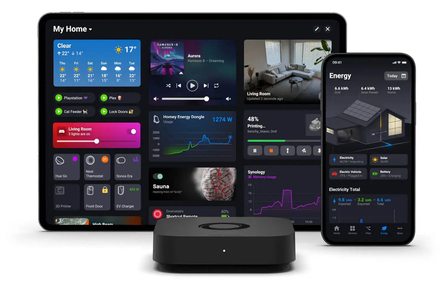 Software: Advanced Flow für Automatisierungen, Energy-Monitoring, Dashboards und Insights – wie beim großen Homey Pro.